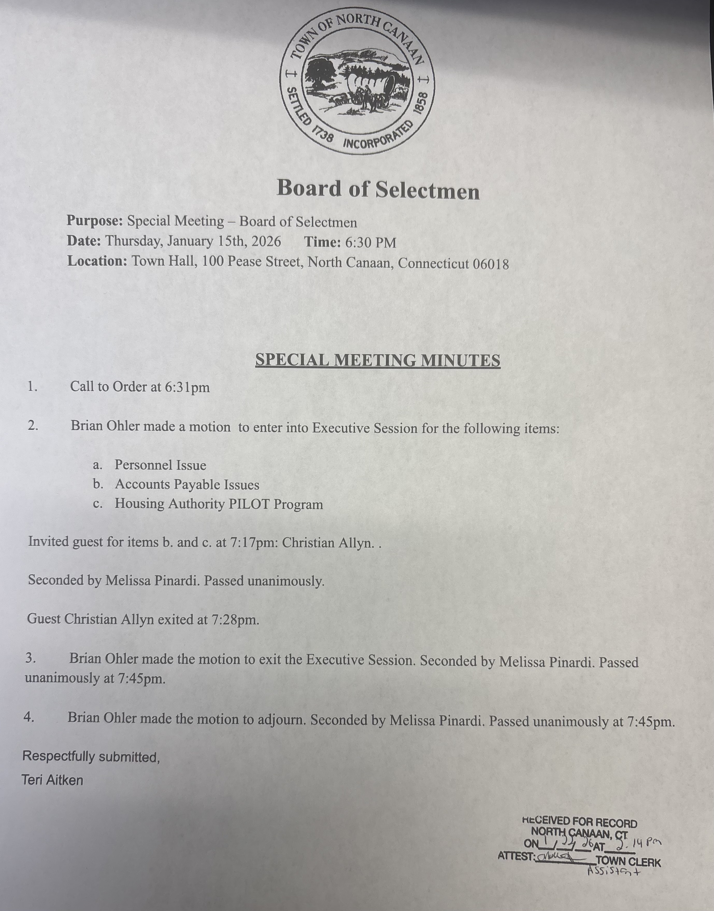 Minutes are subject to amendment until approval at the following meeting.