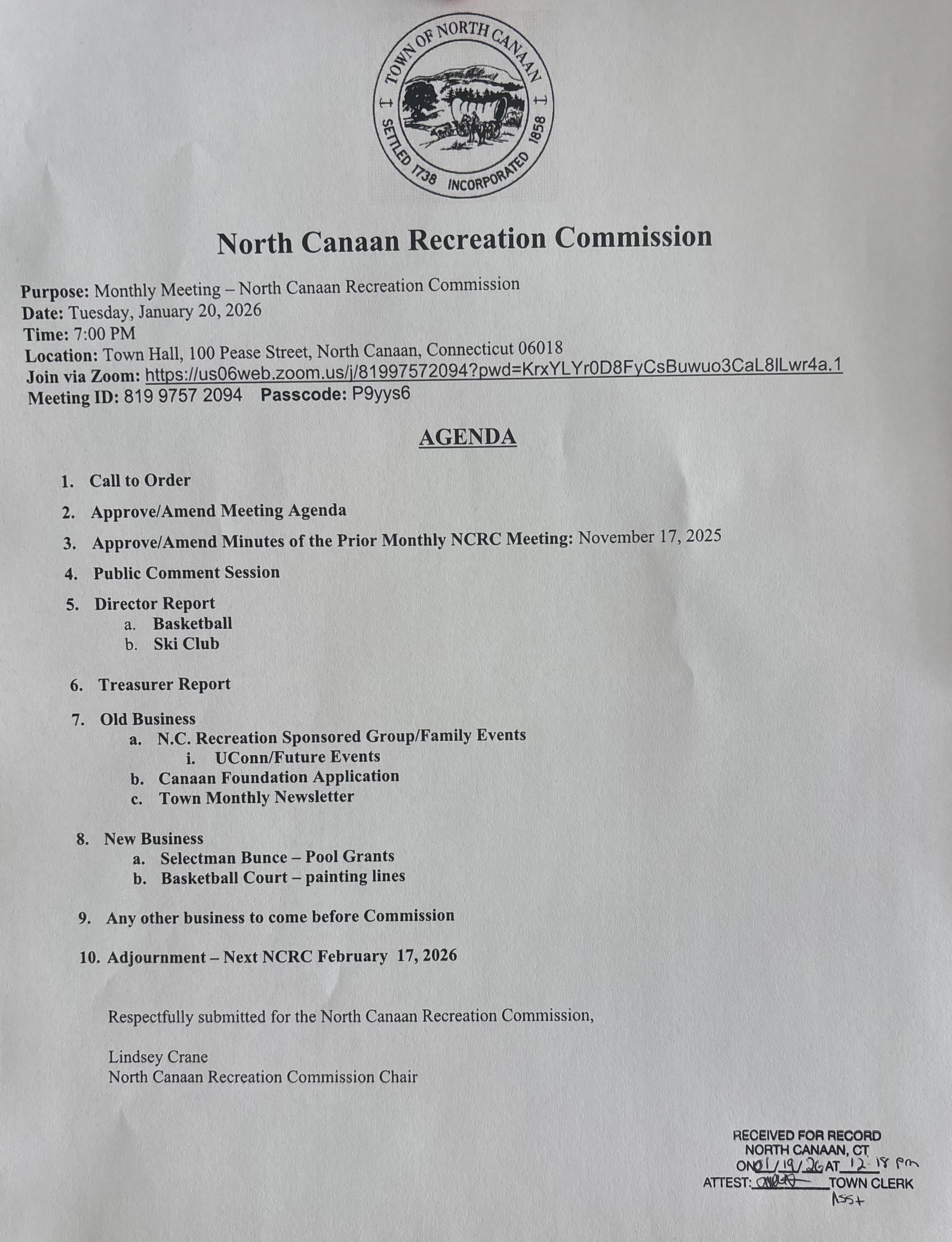 Recreation Commission March Meeting Agenda